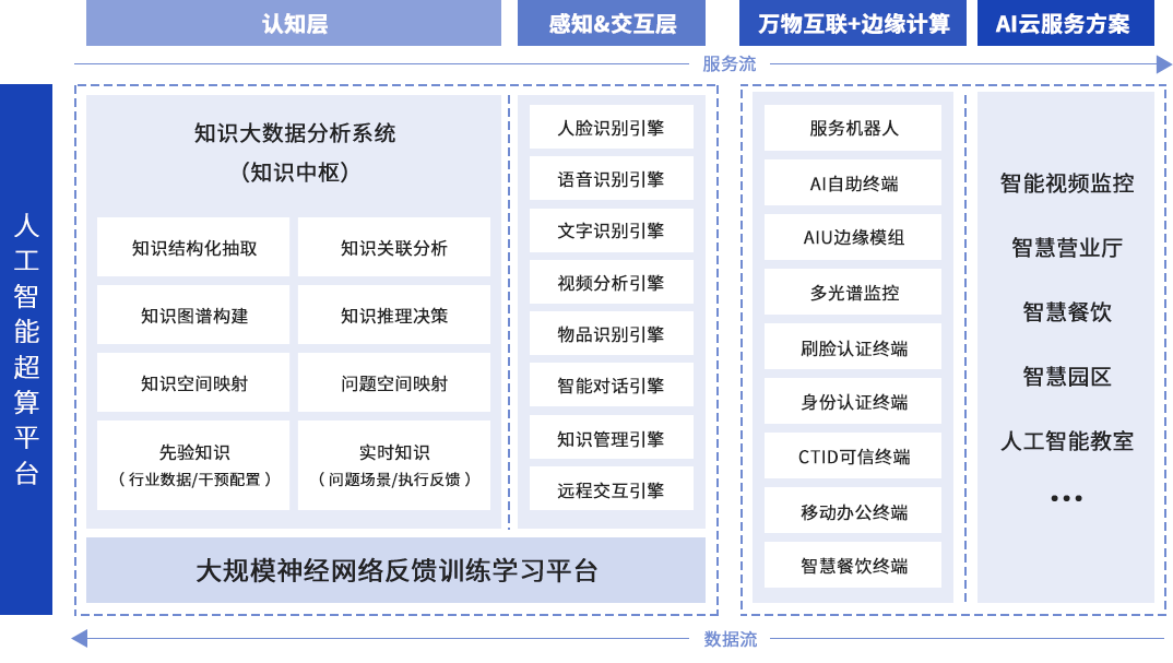 神思云腦是專業(yè)的認知計算服務(wù)平臺,服務(wù)于公司所有的AI云服務(wù)業(yè)務(wù),包括智能視頻監(jiān)控、智慧營業(yè)廳、智慧餐飲、智慧園區(qū)、人工智能教室等。采用開放標準的技術(shù)路線,構(gòu)建大規(guī)模神經(jīng)網(wǎng)絡(luò)與行業(yè)知識庫,具備語音識別、圖像識別、語義理解、知識推理、設(shè)備管理等功能,賦能政務(wù)、公安、稅務(wù)、醫(yī)療、金融、鐵路、家庭服務(wù)等行業(yè)客戶應(yīng)用。通過前端應(yīng)用積累用戶各類結(jié)構(gòu)化與非結(jié)構(gòu)化數(shù)據(jù),支持用戶知識迭代演化更新,實現(xiàn)神思云腦智力水平與服務(wù)能力的不斷提升。神思云腦動態(tài)演化機制將使AI云服務(wù)產(chǎn)品及技術(shù)持續(xù)更新,為用戶提供連續(xù)不斷的增值服務(wù)。