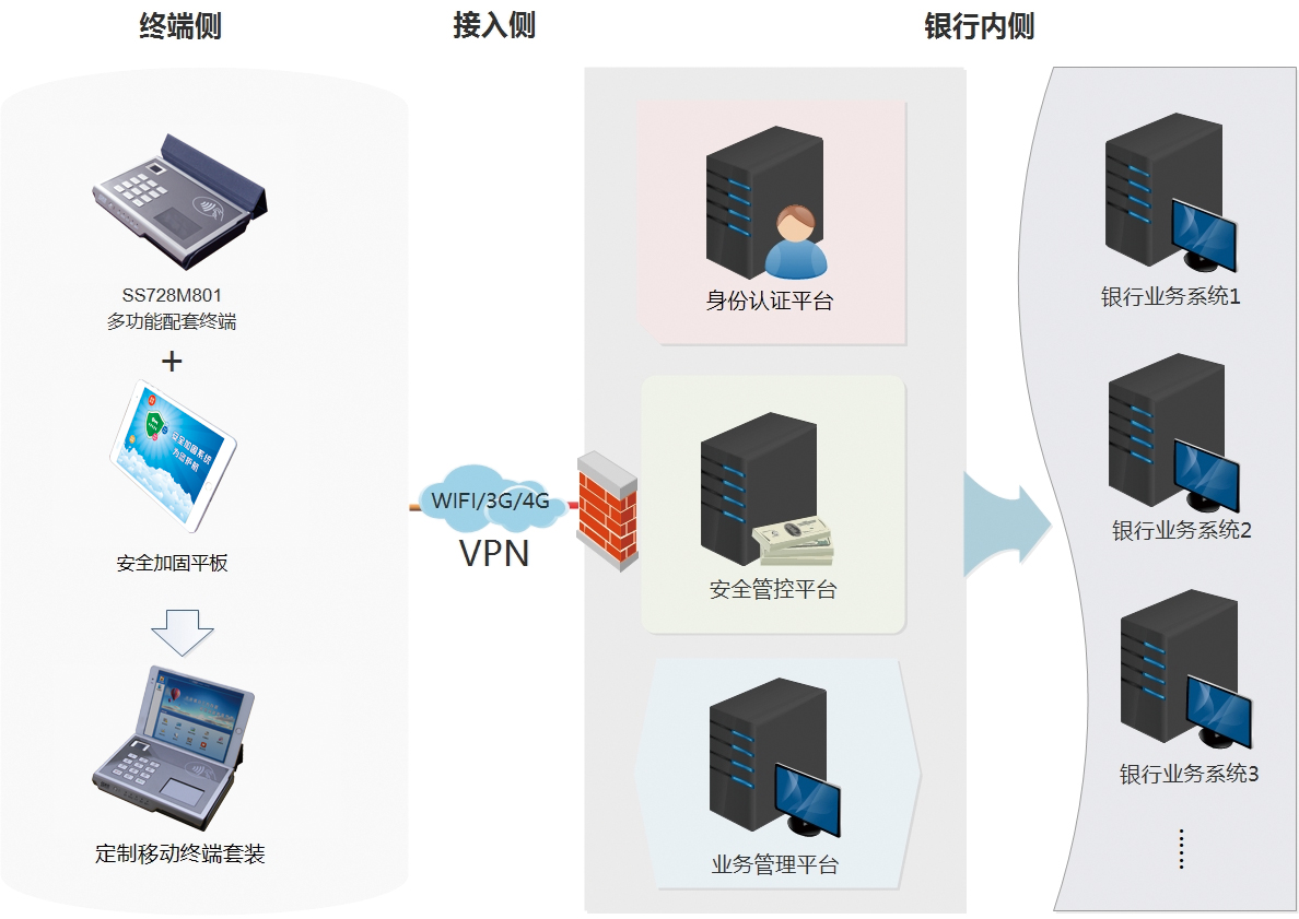 移動終端套裝+移動展業(yè)管理平臺??梢噪S身攜帶的非現(xiàn)金銀行柜臺。